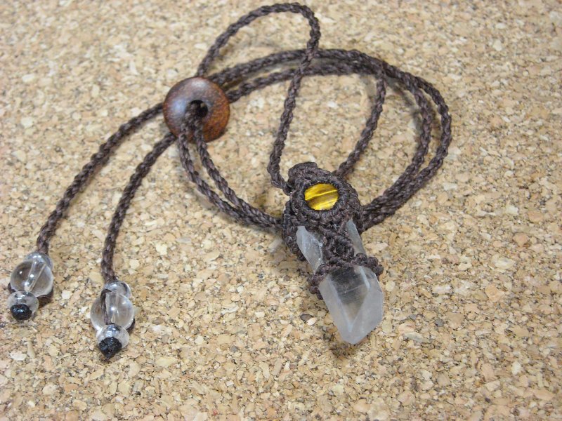 小振りですが、存在感のあるタイガーアイを一緒に編み込んでいます。